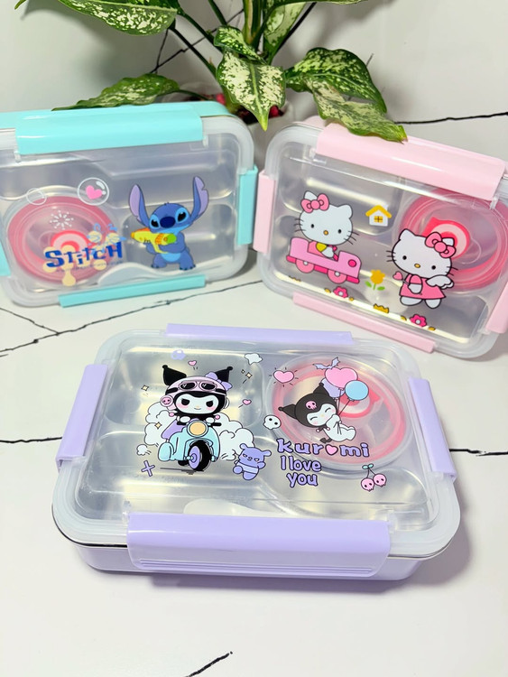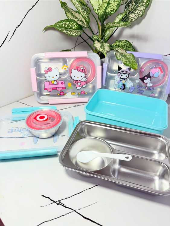 ظرف استیل سه تیکه (کرومی،استیچ،کیتی)، هم فانتزی و هم کاربردی! قابل استفاده در مایکروویو برای داغ کردن غذا با همان زیبایی و استحکام استیل. لذت غذا با طراحی خاص، حتی در دمای بالا!